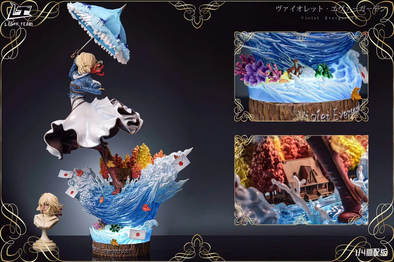 2. Version 1/4 SSS come with main character + light-up transparent base + 3x exchangeable heads (realistic head + stylized head + anime head) + 2x head sculpt stands + maple forest + small cabin + maple leaf coral envelope, etc. + bonus logo stand.