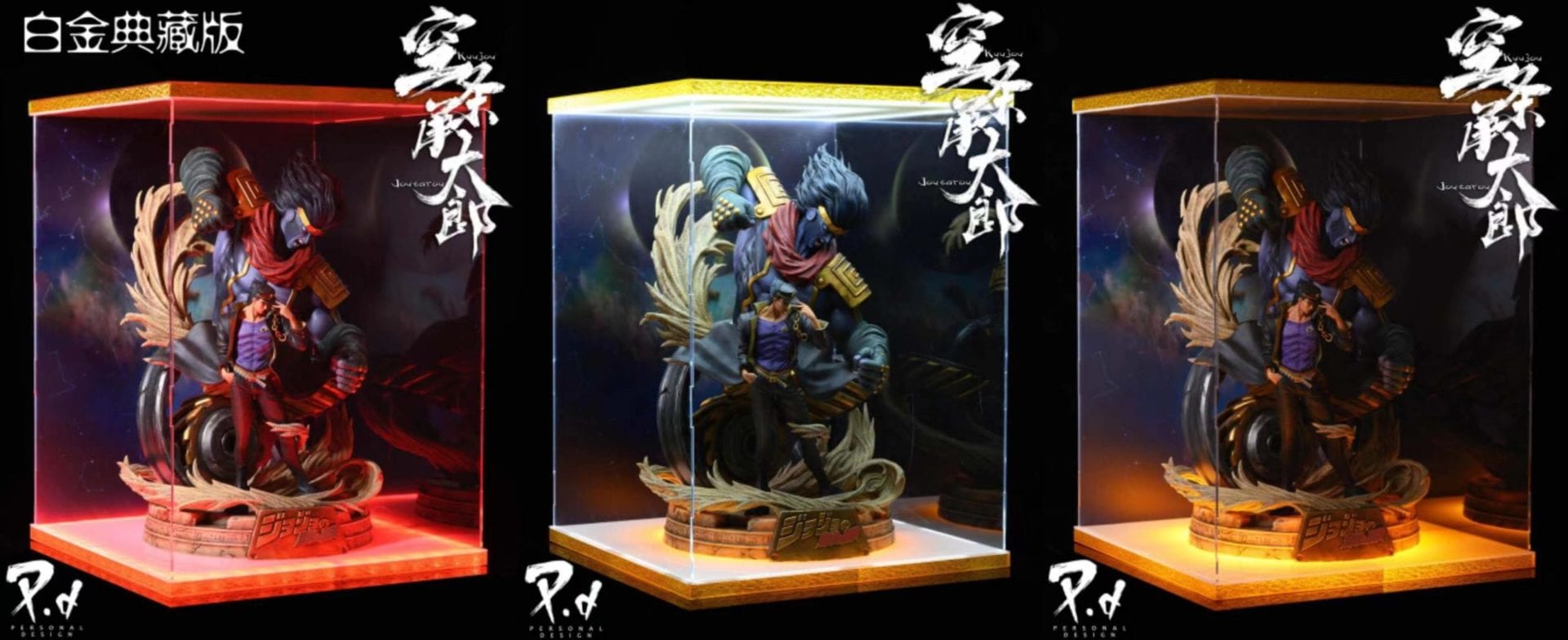 3) Exclusive = Character + Base + Star Platinum + Light Box/人物 + 地台 + 命运的齿轮 + 典藏灯箱